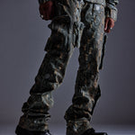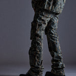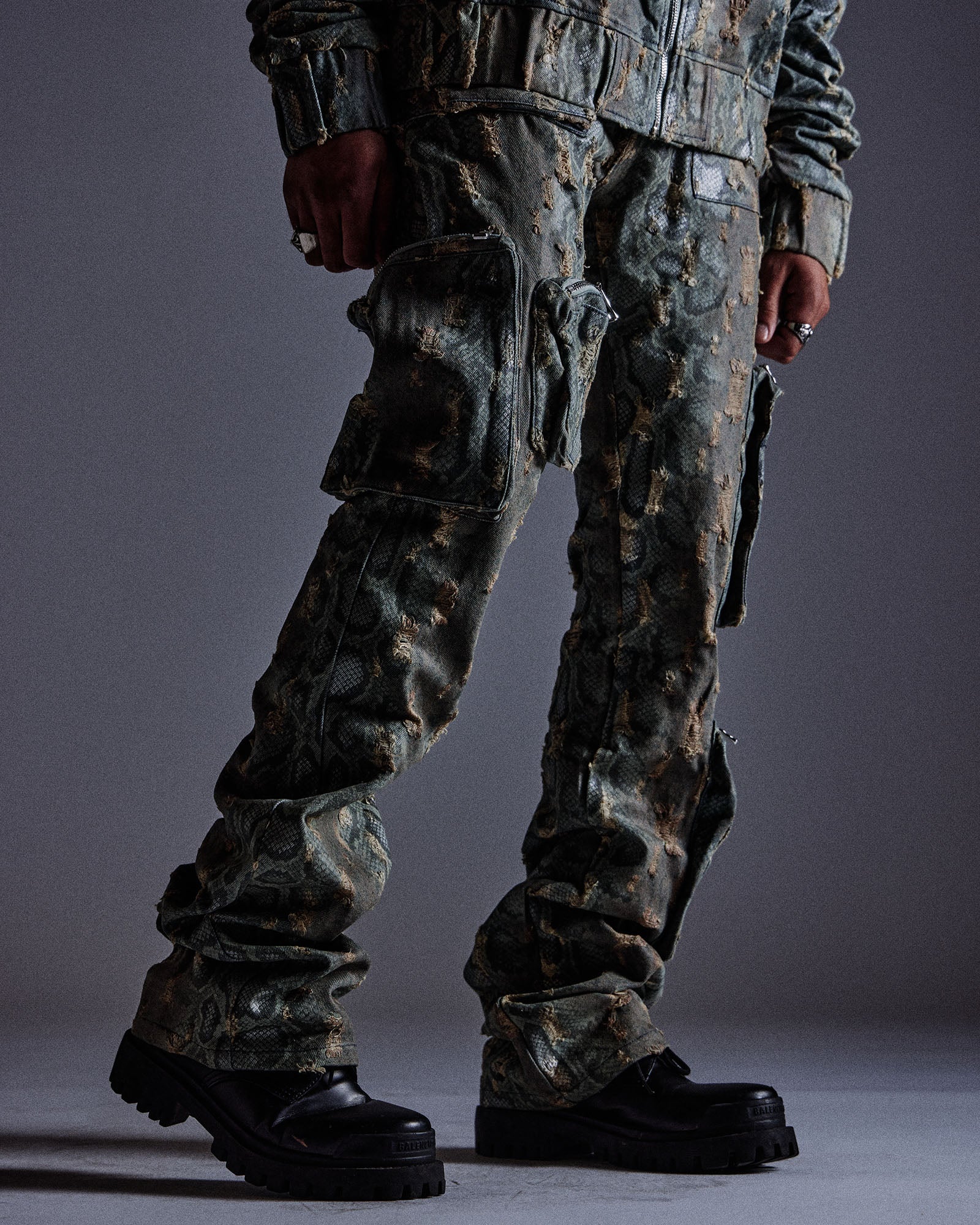 "Ahmanson" Denim Snakeskin Flared Cargo Pant (Blue)