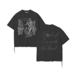 Printed on our new all custom blanks made from scratch that are highlighted by a heavier, thicker, “washed down to soften” cotton fabric with a boxier fit and thicker neck collar. Features a muted dark tones print.