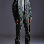 Constructed out of our new denim snakeskin textile, specially developed for SP25 - Multiple washes and sanding treatment make for an incredible exterior finish, which is also highlighted by a subtle surface shine and unique rugged distressing throughout the garment. Jacket features shirred sleeves and a enlarged, functional rear back pocket with zip enclosure.