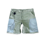 Traditional cargo short silhouette with our new wider, baggier fit. Made of premium polyester nylon in a contrast two tone, finished off with rhinestone embellishments along the cargo pockets and silver flat head studs along the side pocket openings.