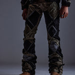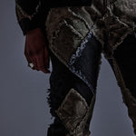 A rare and unique clash of camouflage, argyle and denim specially developed for SP25 - A mixed variety of traditional camouflage patterns, sectioned and reconstructed with different dark tones of denim into a raw seam argyle pattern. Quality, fit and finish are as good as it comes on the market.